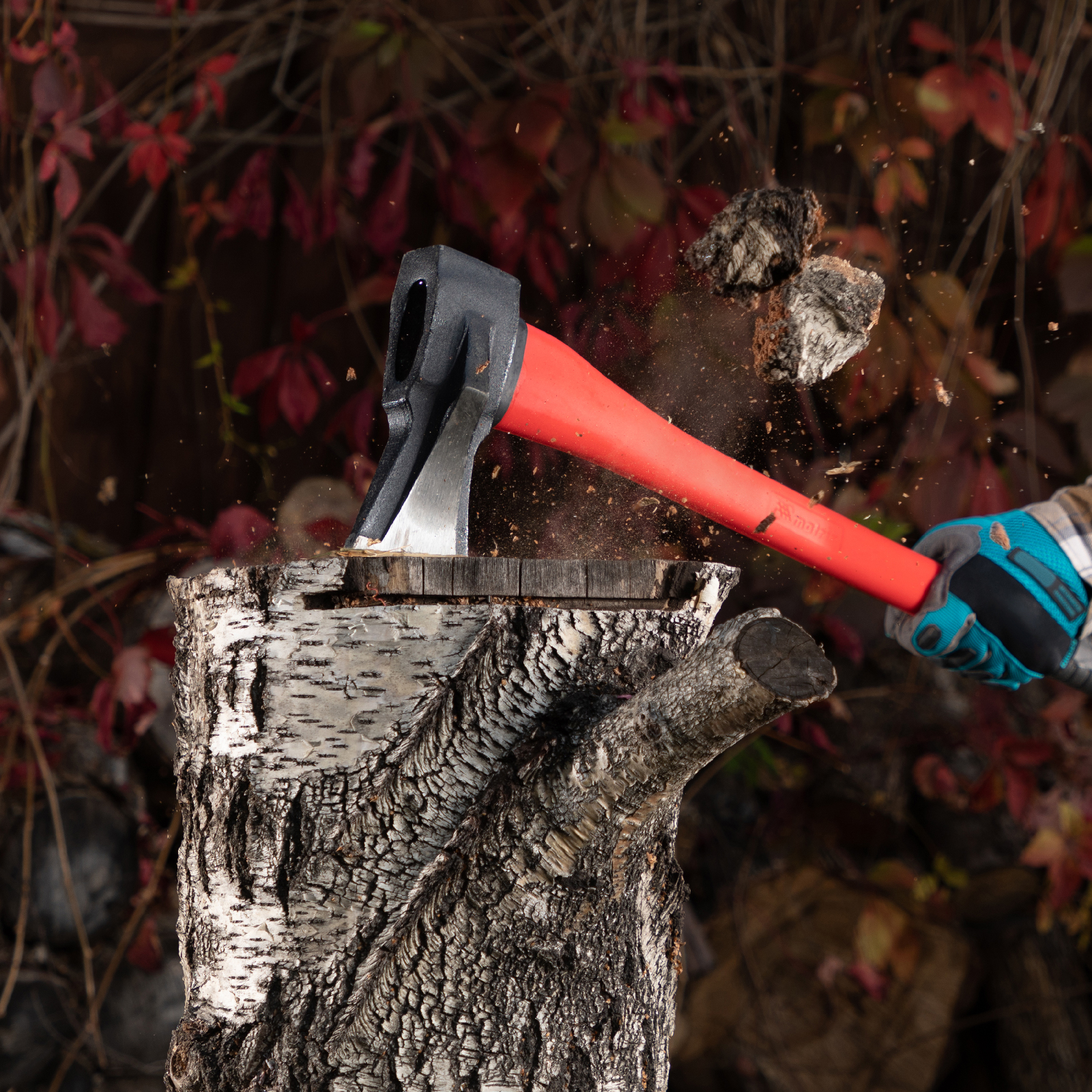 - Комфортное использование — благодаря резиновым накладкам топорище не выскальзывает из рук.
