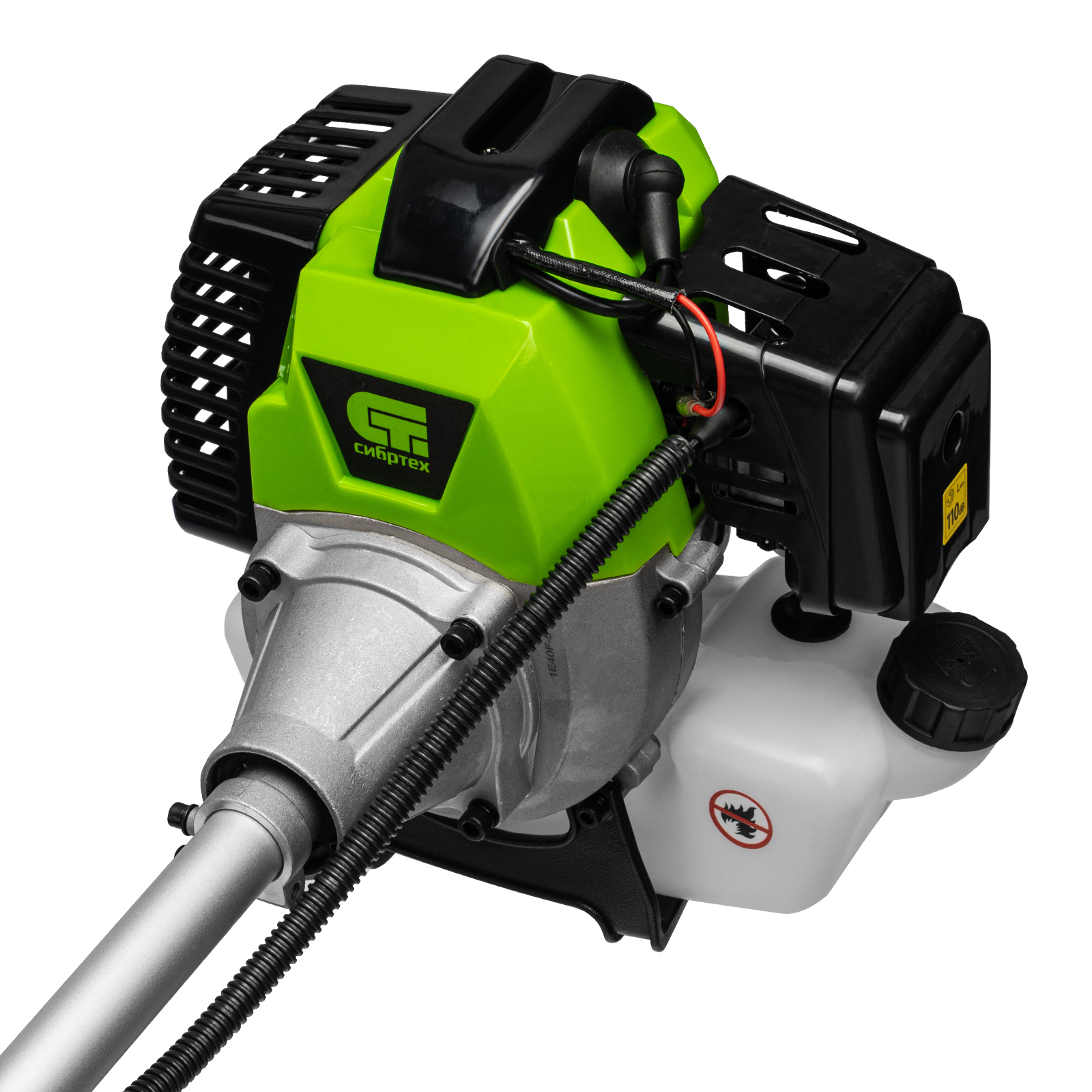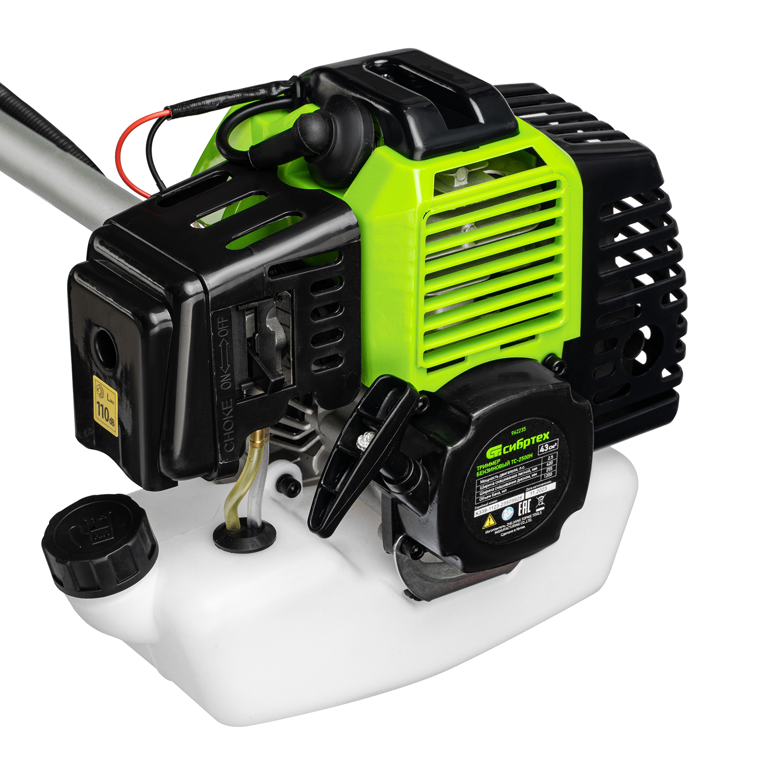 Триммер бензиновый Сибртех ТС-2500Н 962235 с двигателем объемом 43 см3 и неразъемной штангой поставляется комплектом, состоящим из 2 частей. Используется для стрижки газонной травы и скашивания растительности. Входящий в комплект поставки трехлопастный нож позволяет легко справляться с густой, жесткой травой и толстыми стеблями сорняков. Оснастка вращается с частотой 9500 об/мин, ширина скашивания леской составляет 420 мм, ножом — 255 мм.