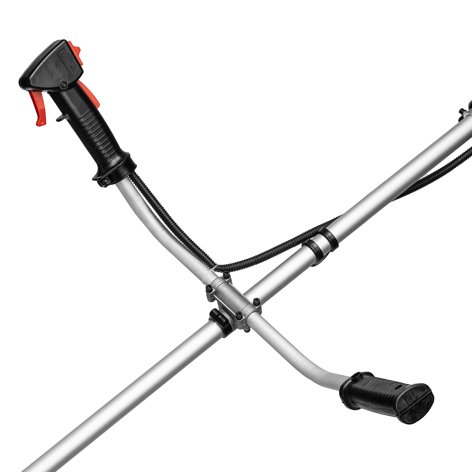 - Комфортная работа — благодаря рукояткам велосипедного типа, плечевому ремню и оптимизированной антивибрационной системе триммер удобно удерживать и направлять.
