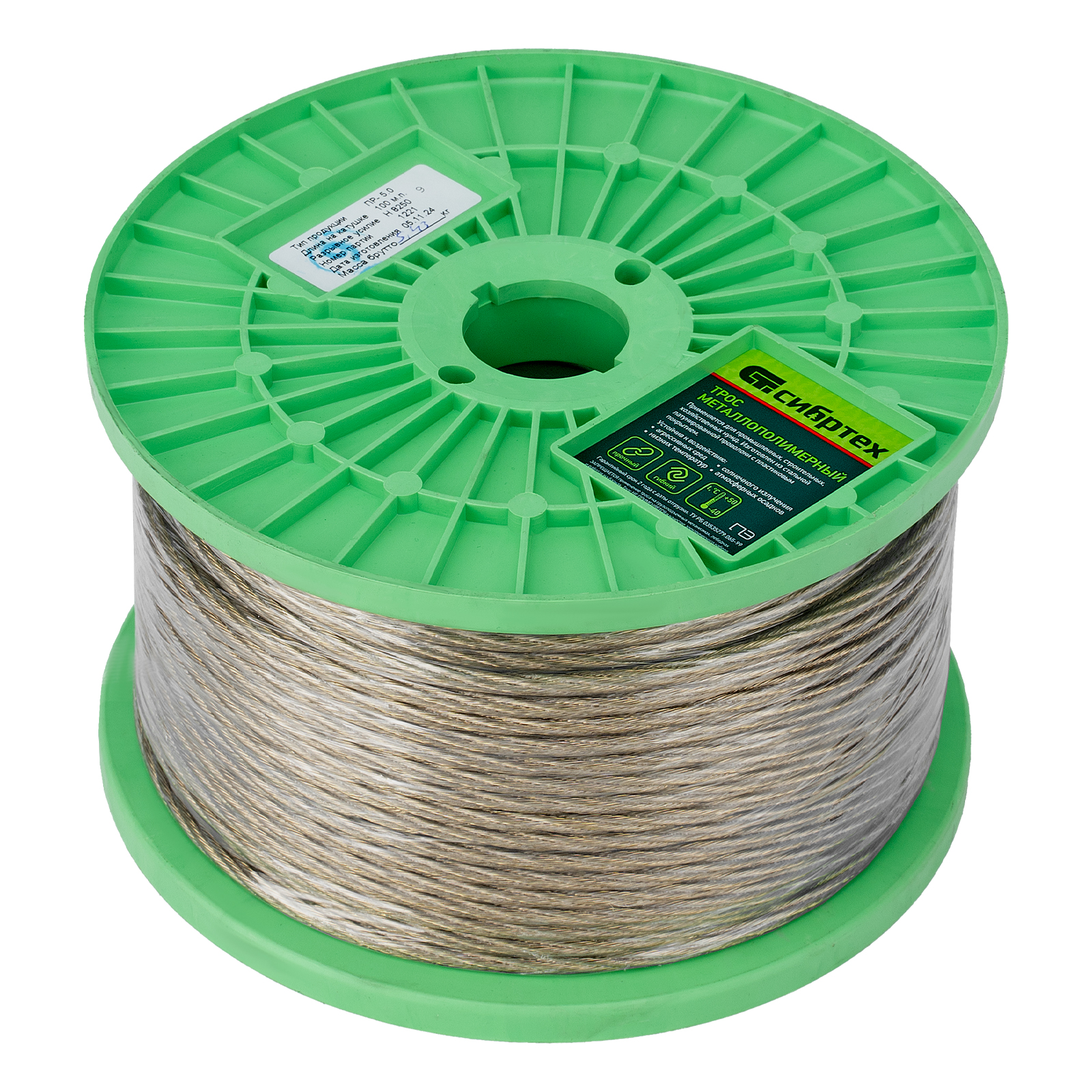 Трос металлополимерный прозрачный ПР-5.0, толщина 4.0 мм, катушка 100 метров Сибртех в Краснодаре