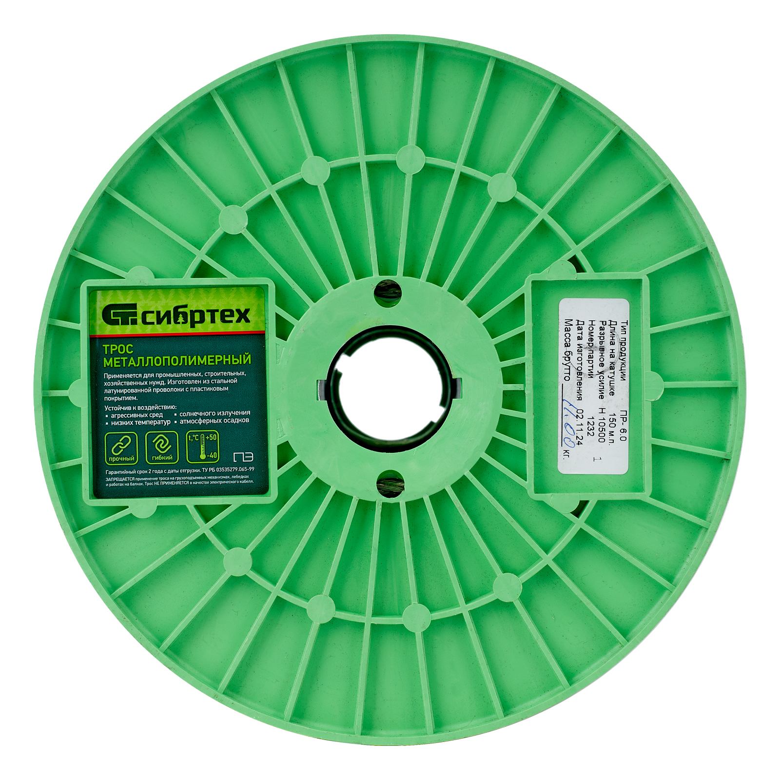 Металлополимерный прозрачный трос ПР-6.0 Сибртех 47640 толщиной 6 мм, 150 м. п. на катушке, используется для монтажа рекламных баннеров, установки ограждений, палаток, теплиц, погружения скважинных насосов и датчиков. Применяется в качестве садового троса-шнура для подвязки растений, а также может служить для развешивания белья. Жила шнура изготовлена из стальной проволоки, поэтому он выдерживает значительные нагрузки.