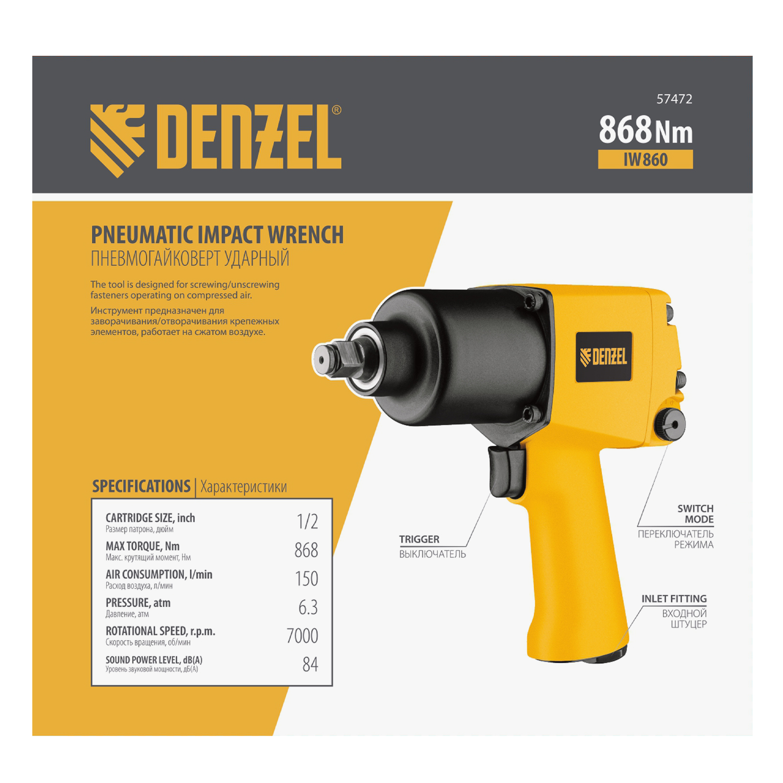 Ударный пневмогайковерт IW860, 1/2", 7000 об/мин, 868 Нм Denzel в Краснодаре