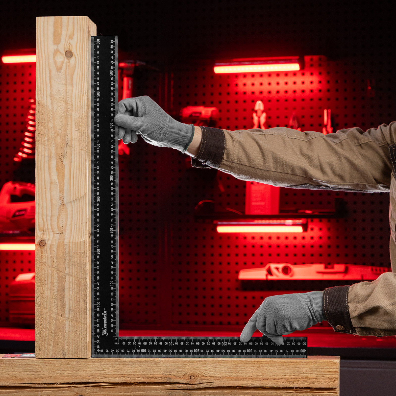 Цельнометаллический угольник Matrix 32371 размером 400 х 600 мм поможет проверить прямые углы или нанести линию разметки. Инструмент повышает точность столярных и отделочных работ.