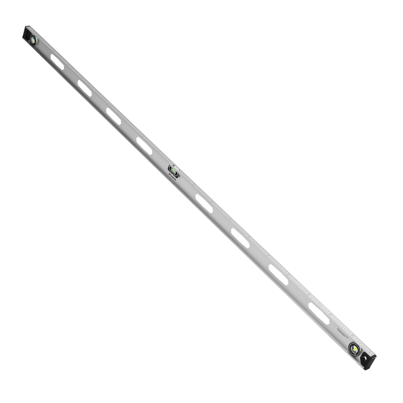 Алюминиевый уровень Matrix «Рельс» 34041 длиной 2000 мм имеет 3 глазка: 2 для проверки отклонений от заданной вертикали и горизонтали и 1 поворотный для проверки наклонных поверхностей.,Для определения отклонения вертикали 90 градусов необходимо использовать пузырьковую ампулу только в верхнем положении уровня. Только базовая поверхность является рабочей (противоположная ампуле 180 градусов).