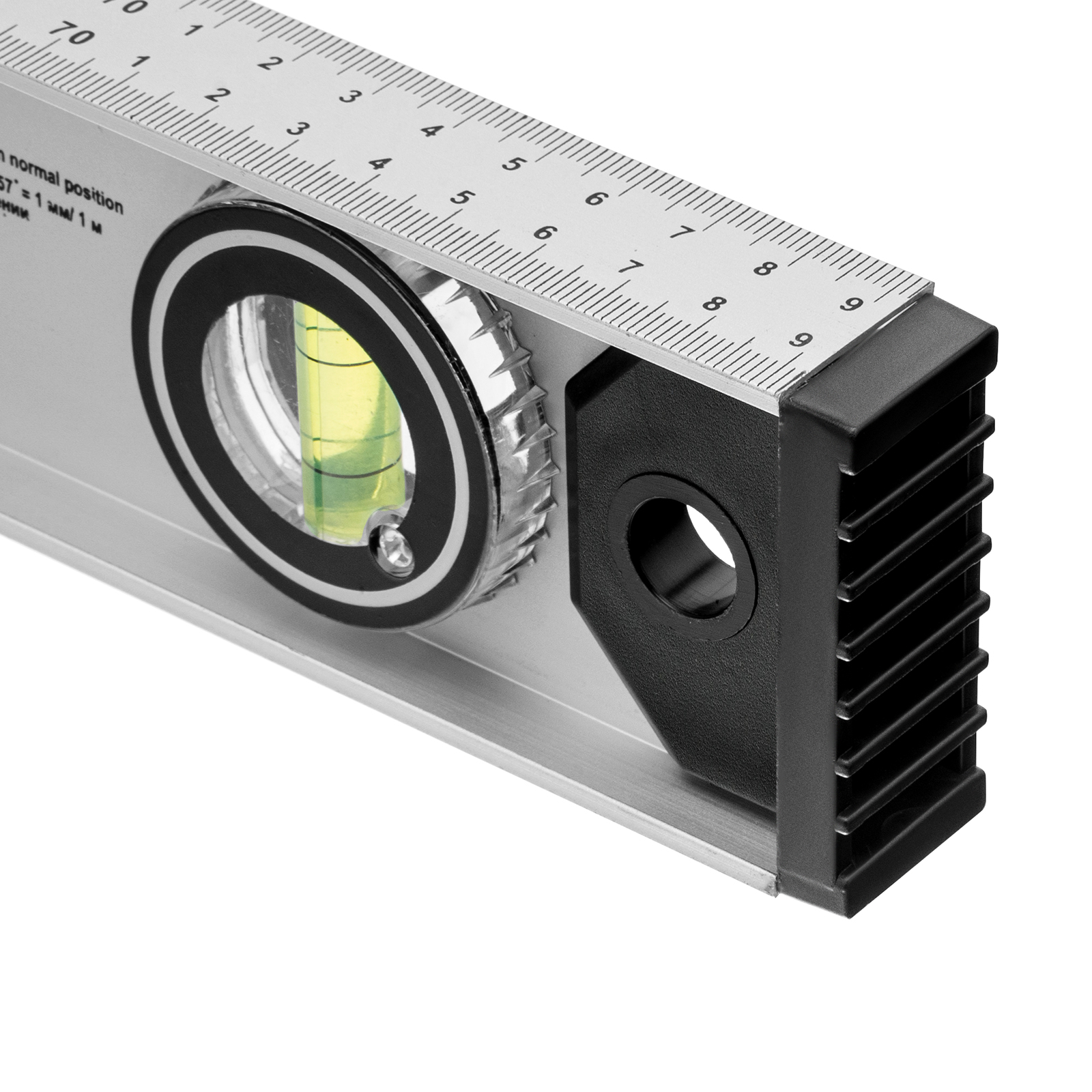 Для определения отклонения вертикали 90° необходимо использовать пузырьковую ампулу только в верхнем положении уровня. Только базовая поверхность (противоположная ампуле 180°) является рабочей.