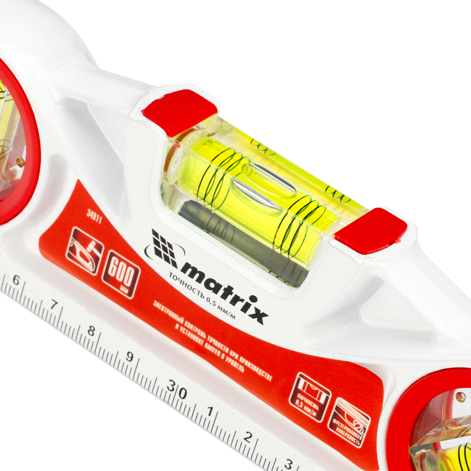 Уровень алюминиевый литой, фрезерованный, 3 глазка, две ударные площадки, 600 мм Matrix в Краснодаре