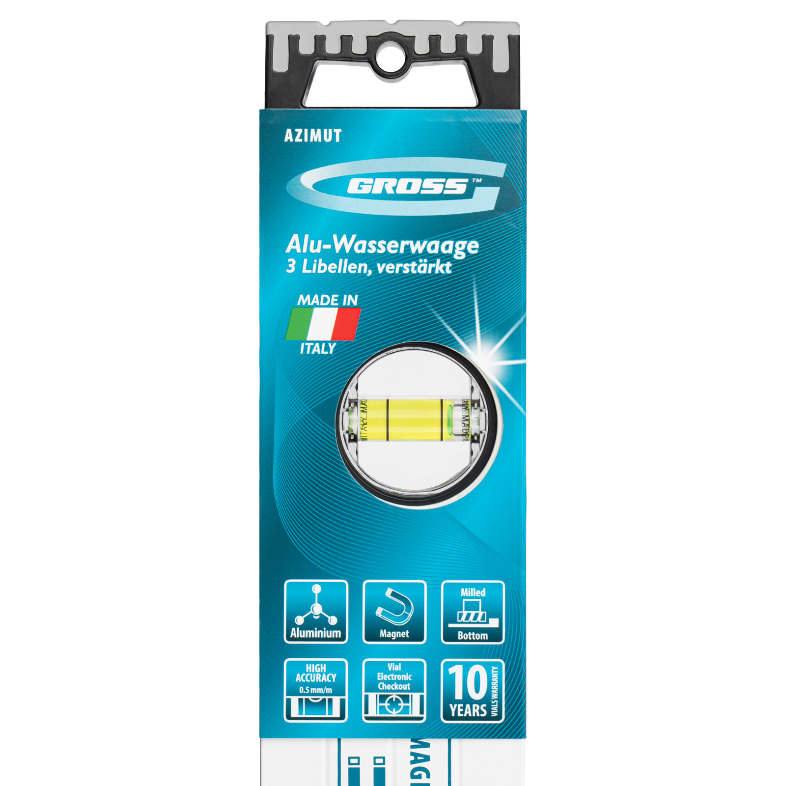 Усиленный алюминиевый уровень Gross 34372 длиной 1000 мм, с рукоятками и 3 глазками, фрезерованный, магнитный, — это простой и универсальный инструмент для проверки горизонтали и вертикали. Благодаря качественному исполнению инструмент обеспечивает высокую точность работы.