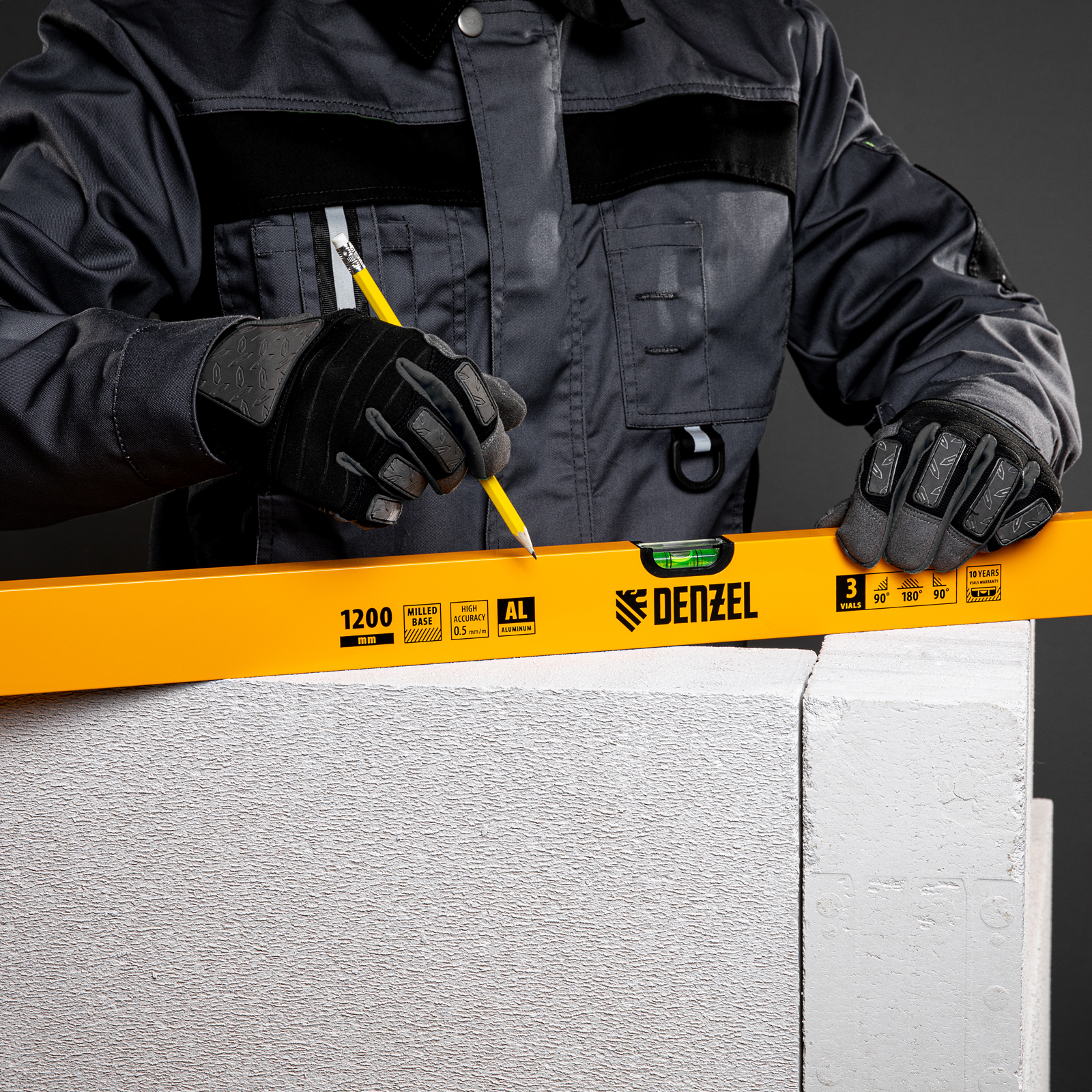 Уровень алюминиевый, 1200 мм, фрезерованный, 3 глазка Denzel в Краснодаре