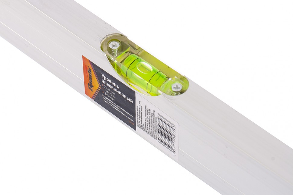 Алюминиевый уровень Sparta 35108 длиной 800 мм, с 2 глазками и линейкой, рассчитан на применение в быту и в производственных условиях. Он поможет добиться точного выстраивания разметочных линий для последующей установки конструкций, полок, укладки облицовочных материалов и т.д. Две пузырьковые ампулы обеспечивают точный контроль отклонений поверхностей от горизонтальной и вертикальной плоскостей.,Для определения отклонения вертикали 90 градусов необходимо использовать пузырьковую ампулу только в верхнем положении уровня. Только базовая поверхность является рабочей (противоположная ампуле 180 градусов).