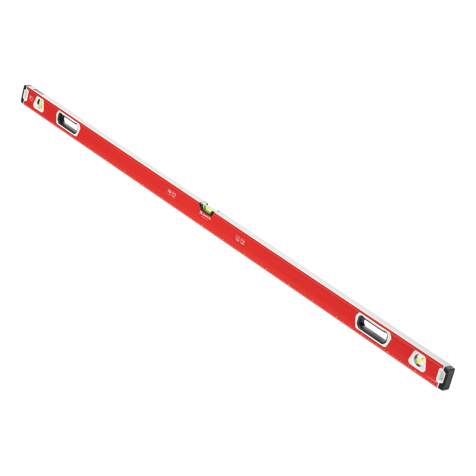 Уровень алюминиевый фрезерованный Matrix 34736 длиной 2000 мм, с магнитной полосой и 2-компонентными рукоятками, 3 глазками и 1 зеркальным отражателем, — измерительный инструмент для контроля отклонений поверхностей от горизонтали, вертикали и угла 45°. Используется для выполнения работ, требующих высокой точности.