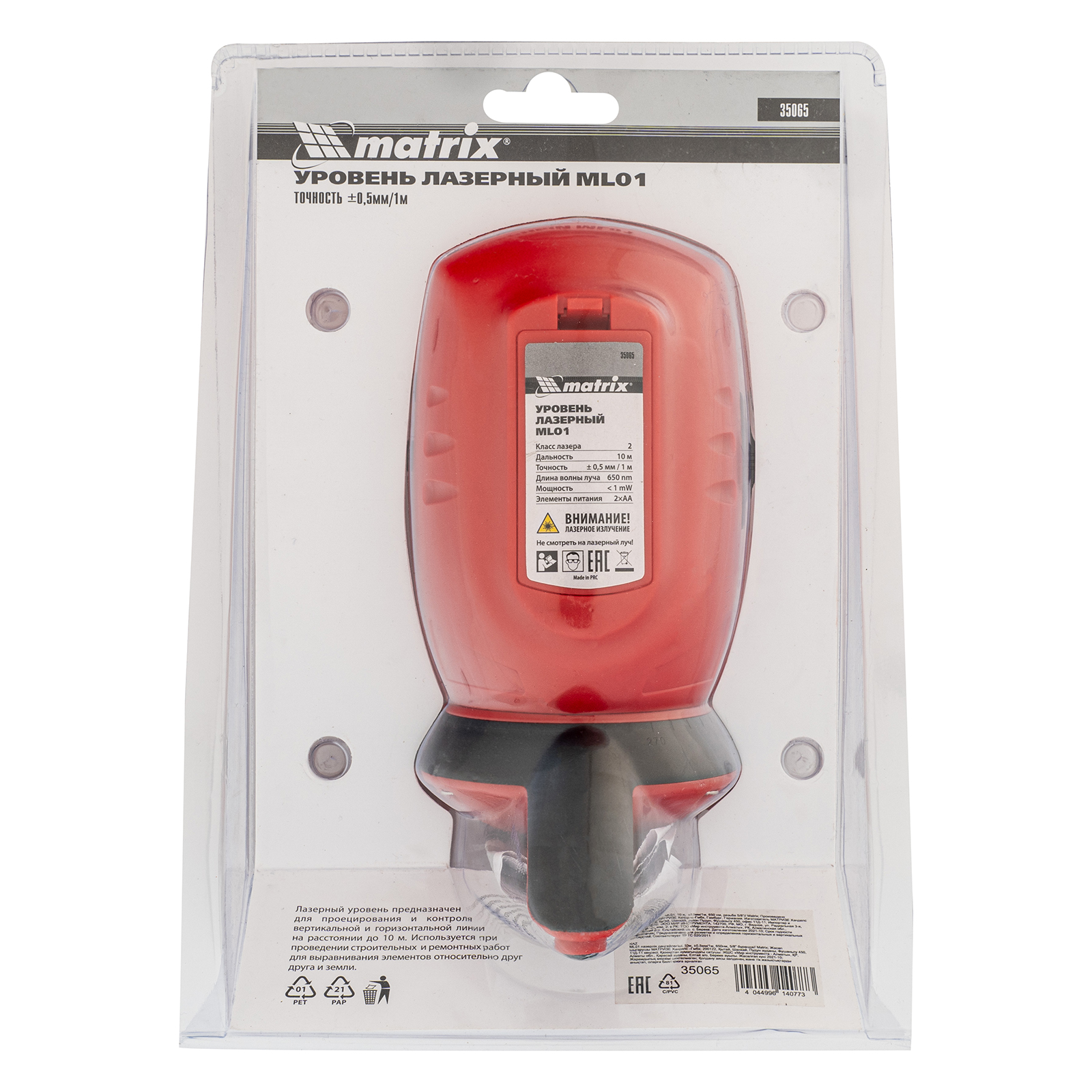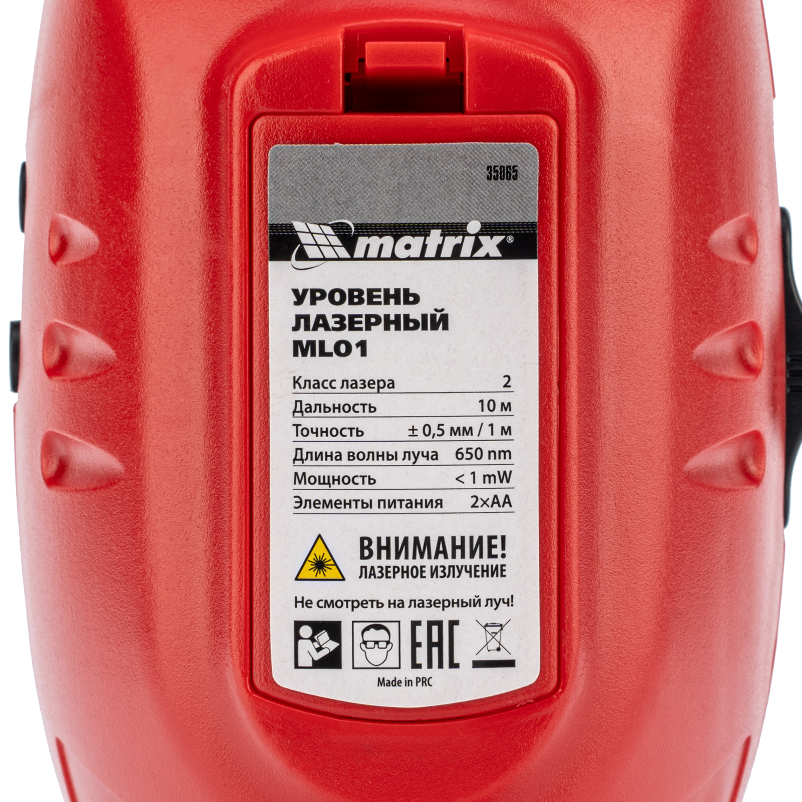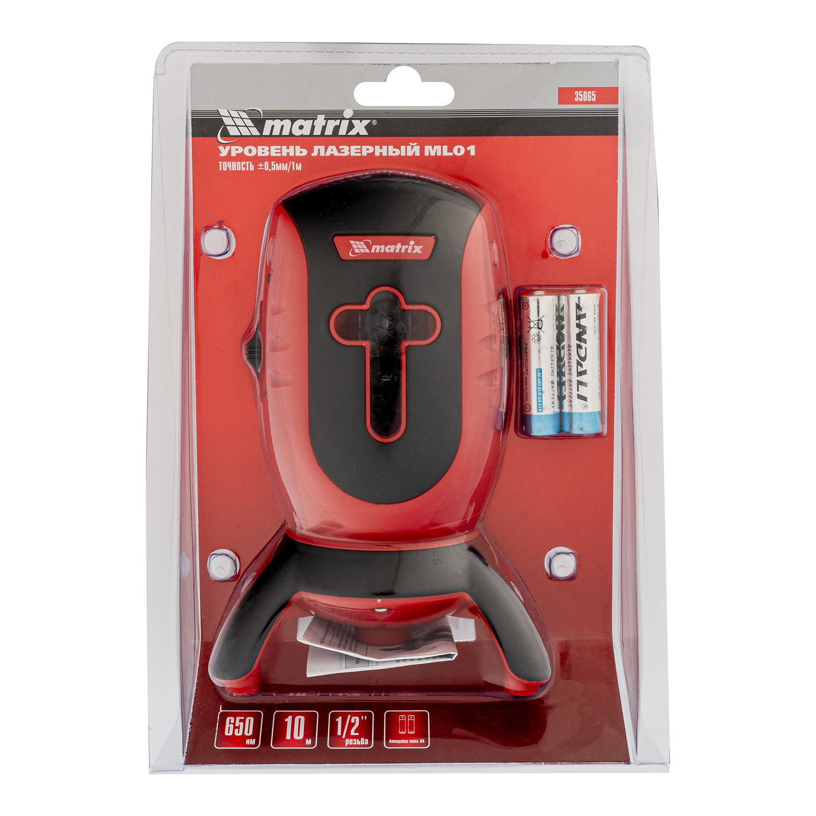 Лазерный уровень ML01T, дальность 10 м, точность ± 0,5 мм, / 1 м, длина волны 650 нм, проекция 1 вертикальная 1 горизонтальная плоскость, резьба под штатив 5/8" Matrix в Краснодаре