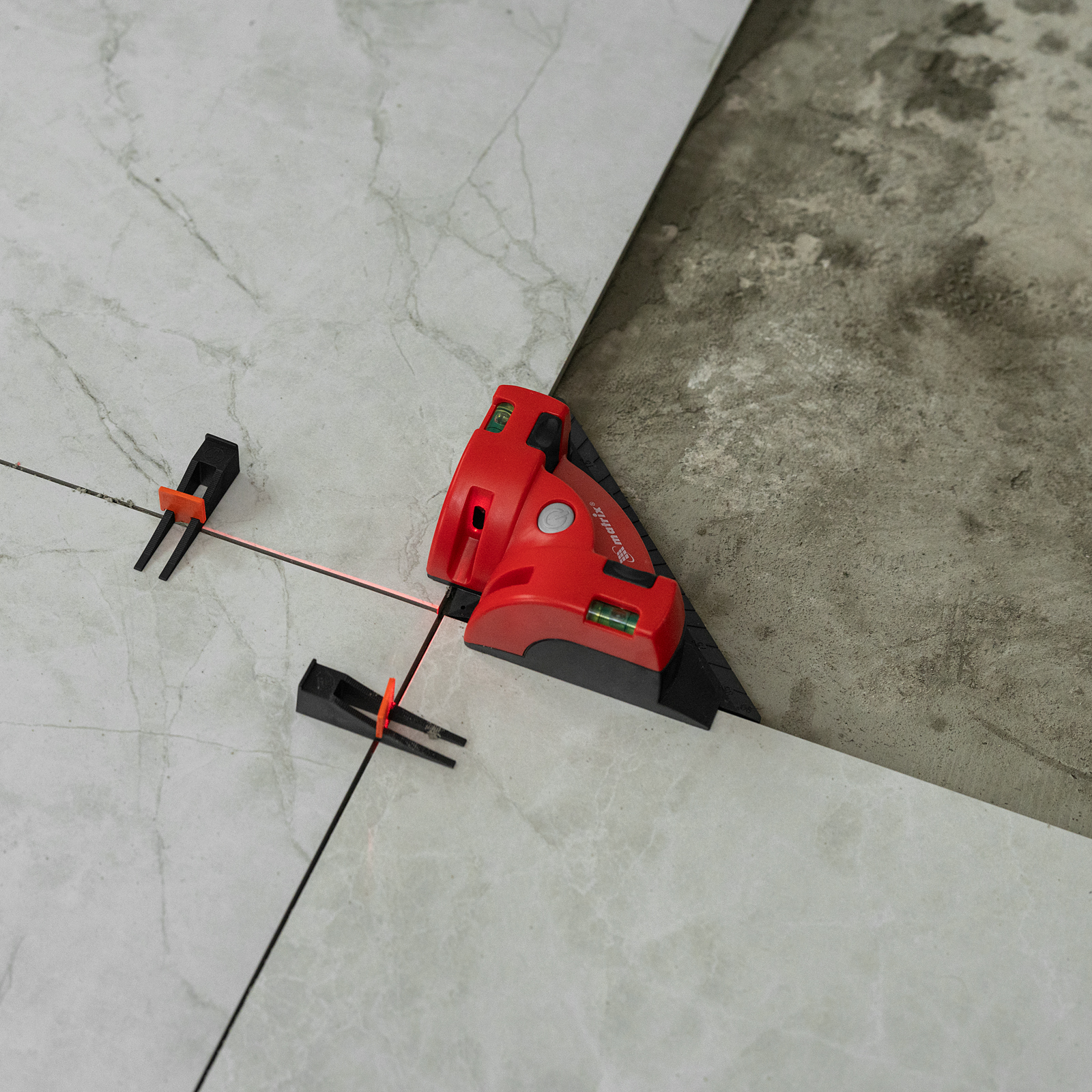Лазерный уровень Matrix 35007 в форме угольника предназначен для разметки поверхностей по горизонтали, вертикали и диагонали. Проецирует 2 лазерные линии под углом 90 градусов на поверхность, параллельно которой он установлен. Угловая форма позволяет использовать инструмент для укладки покрытия на полу, например, ламината, паркета или плитки, или для отделки стен, планировки розеток и выравнивания конструкций.