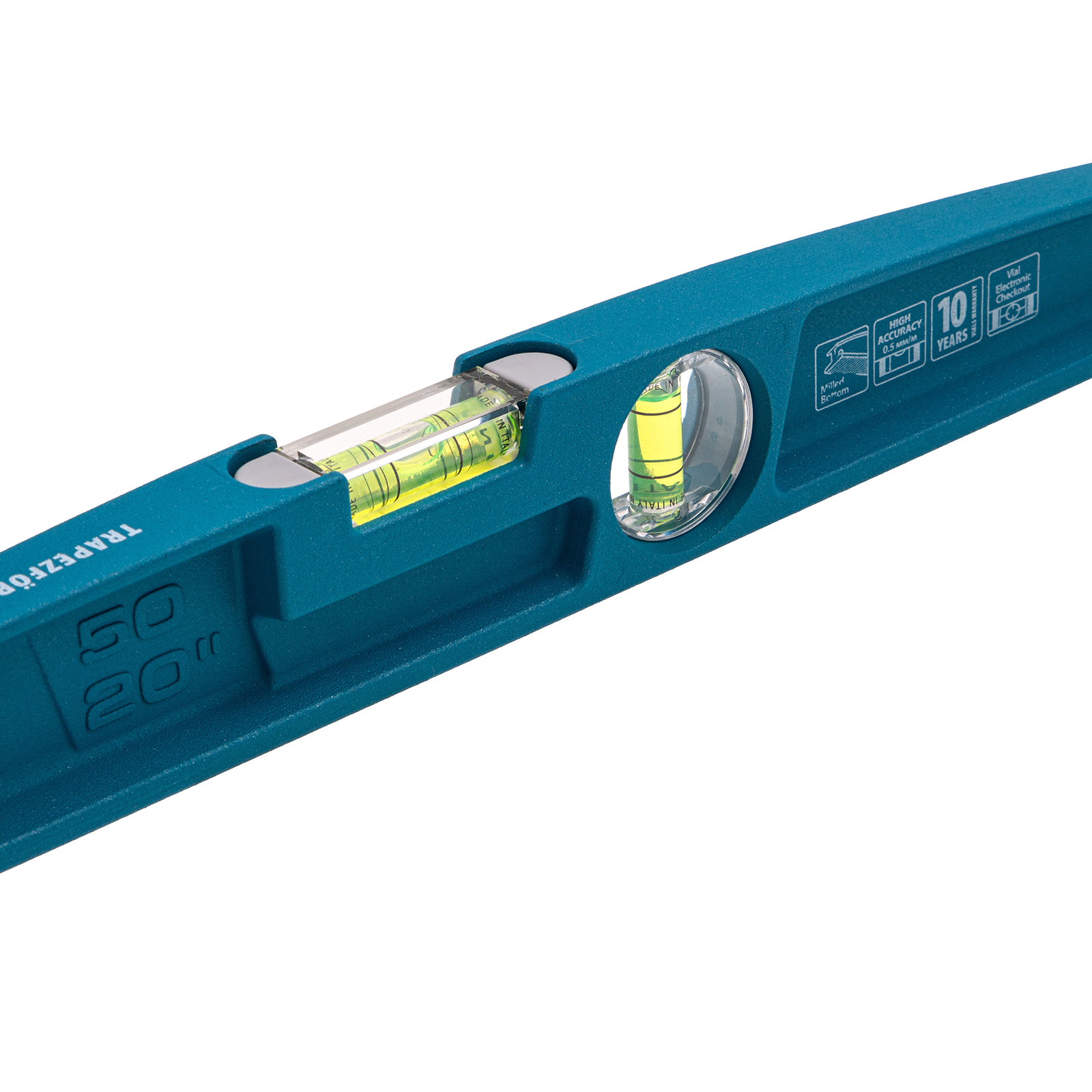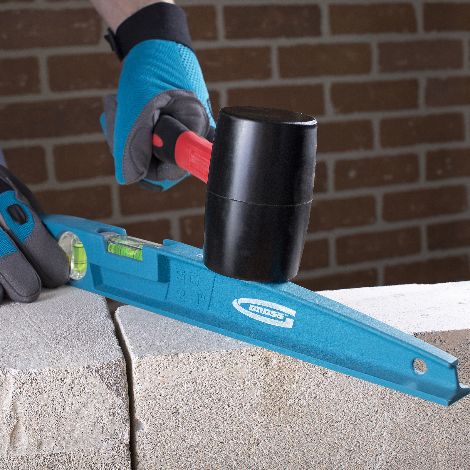 Литой уровень Gross 34915 длиной 500 мм снабжен 2 глазками для построения вертикали и горизонтали. Инструмент оптимально подходит для использования при укладке напольной и настенной плитки, кирпичной кладки, брусчатки и т.д.