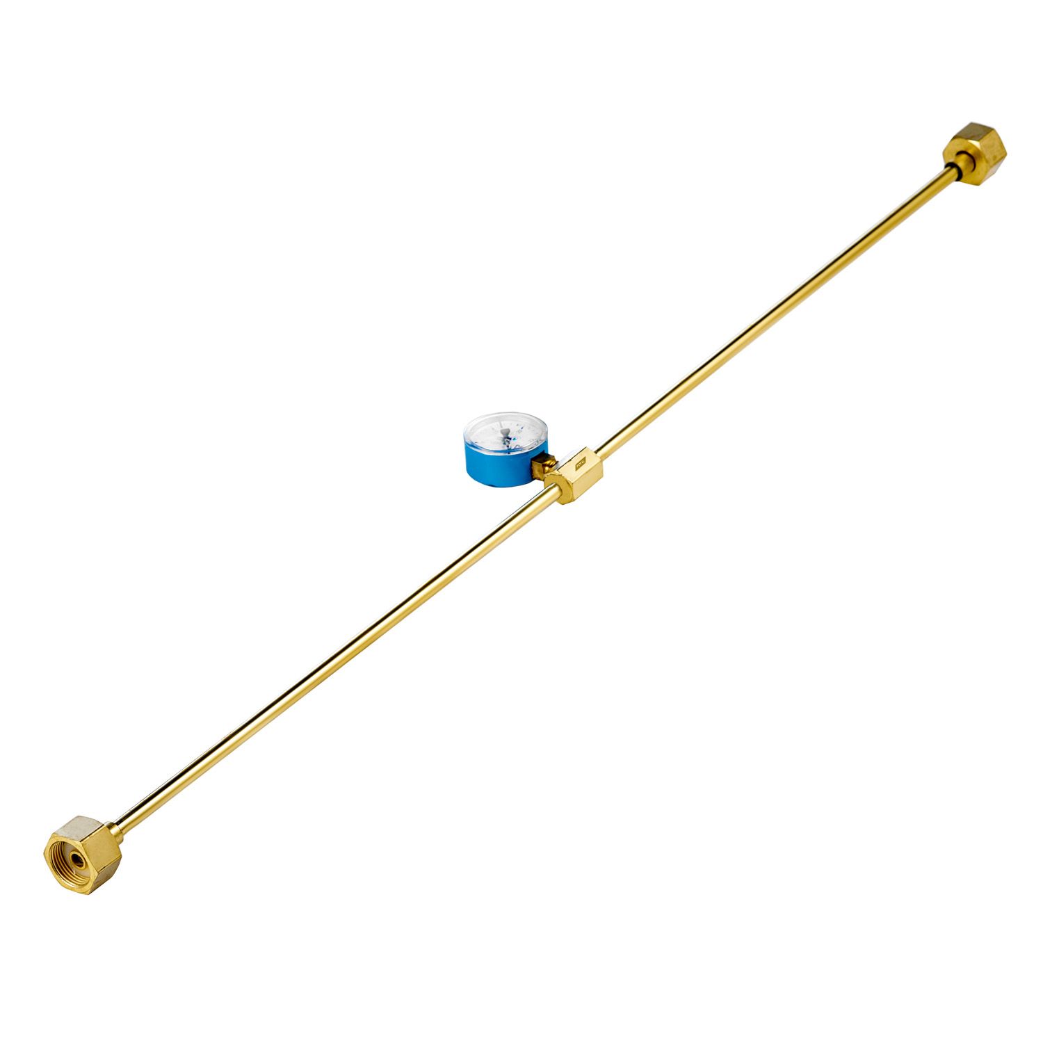 Устройство для перекачки газов из баллона объемом 40 литров в баллоны аналогичного объема. Устройство состоит из латунной трубки длиной 850 мм с накидными гайками G3/4–G3/4 и полиуретановыми прокладками.