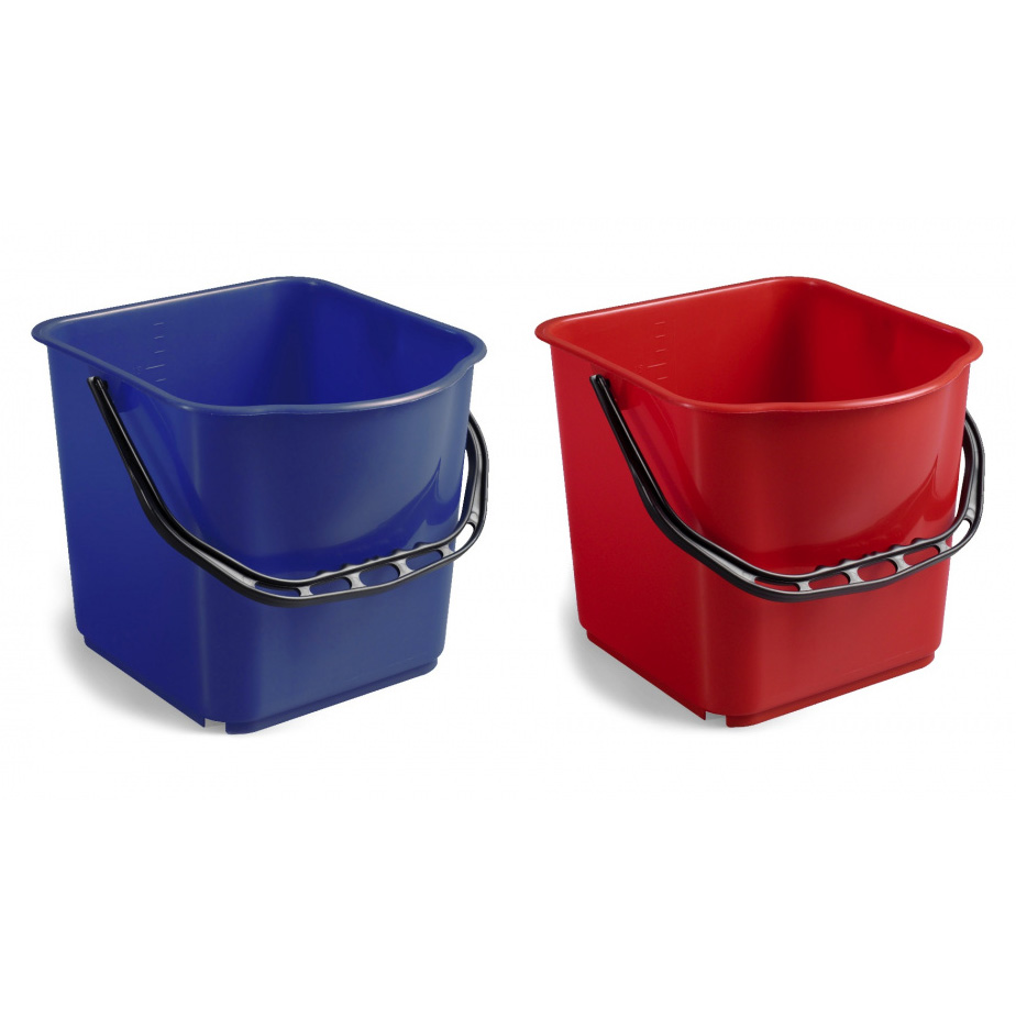 Ведро 25 л красное выполнено из ударопрочного полипропилена и имеет эргономичную рукоятку с удобным захватом. На ведре имеется мерная шкала и носик для слива воды. Использовать ведро можно не только как запасное к уборочным тележкам, но и для простой ручной уборки.