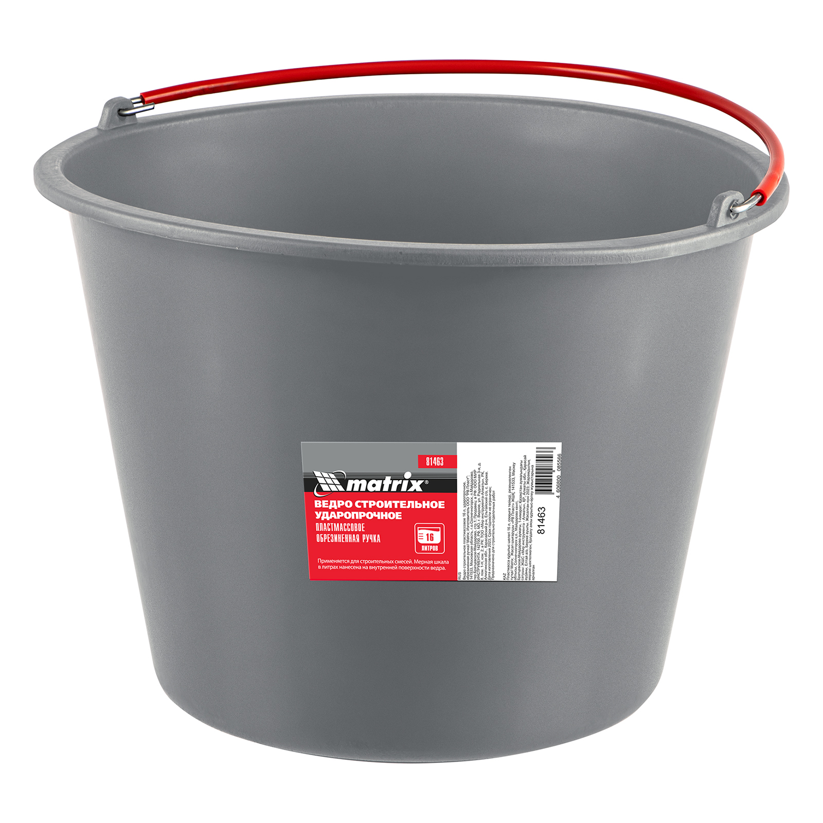 Ведро строительное пластмассовое 16 л, ударопрочное, обрезиненная ручка Matrix в Краснодаре