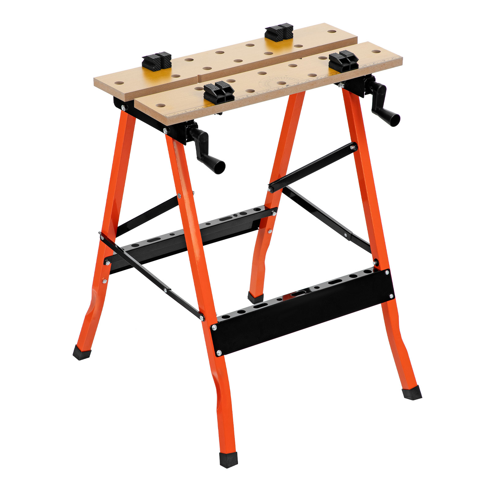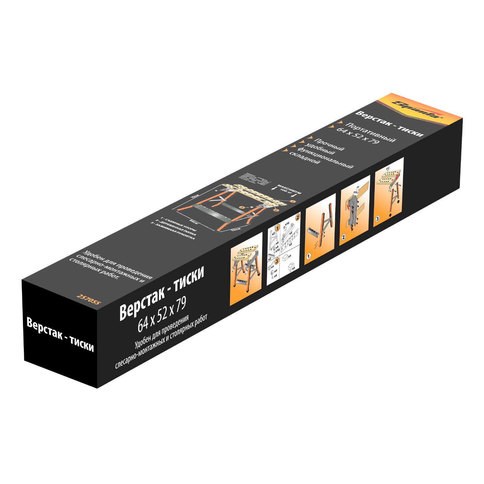 Портативный верстак-тиски Sparta 257055 размером 640 х 520 х 790 мм служит для зажимания заготовок и используется для выполнения столярных и слесарных работ. Столешница представляет собой тиски из двух раздельных блоков, которые позволяют фиксировать даже детали с непараллельными гранями. Верстак пригодится дома и в частной мастерской. Установку необходимо осуществлять на ровной поверхности для максимальной устойчивости и исключения травм из-за несоблюдения техники безопасности.