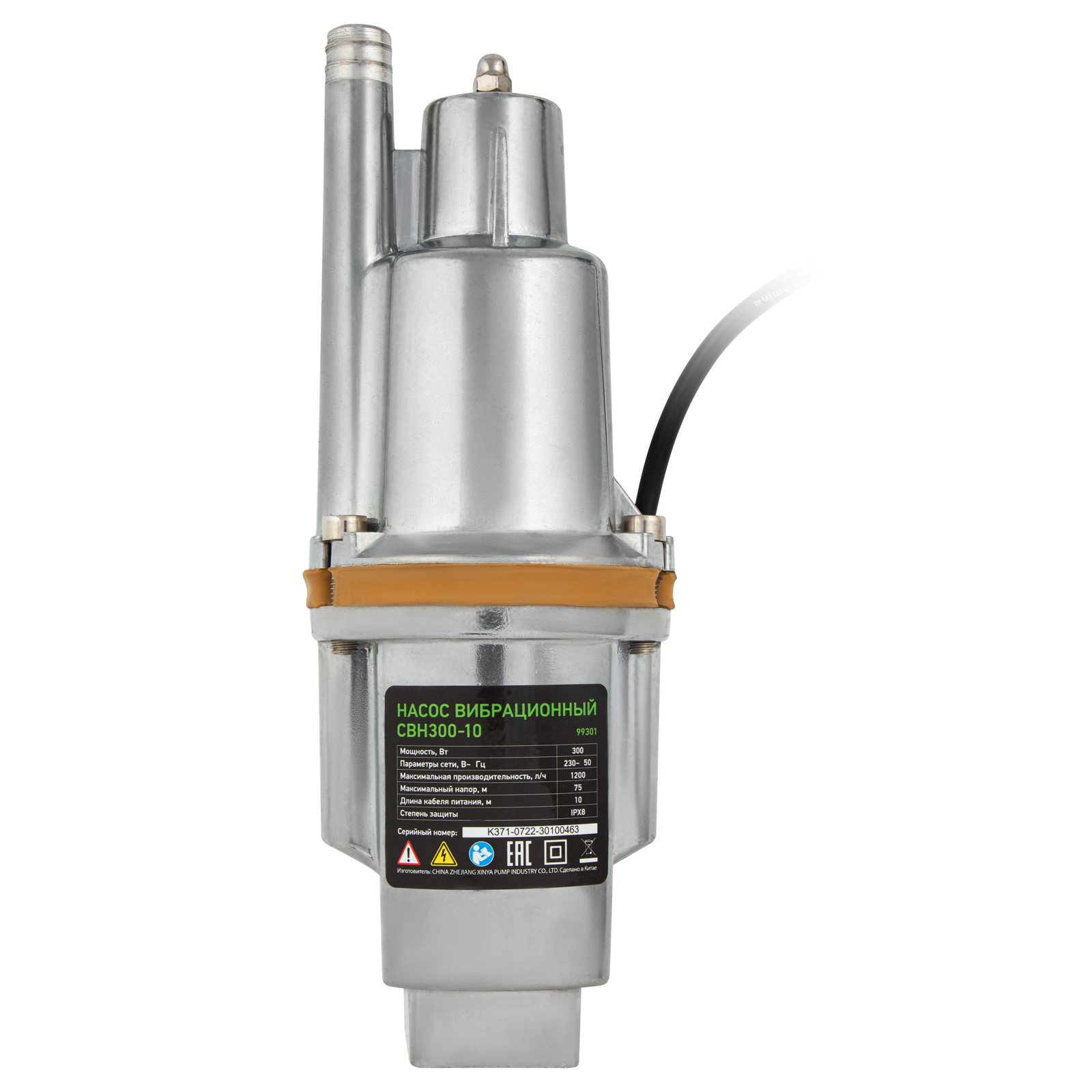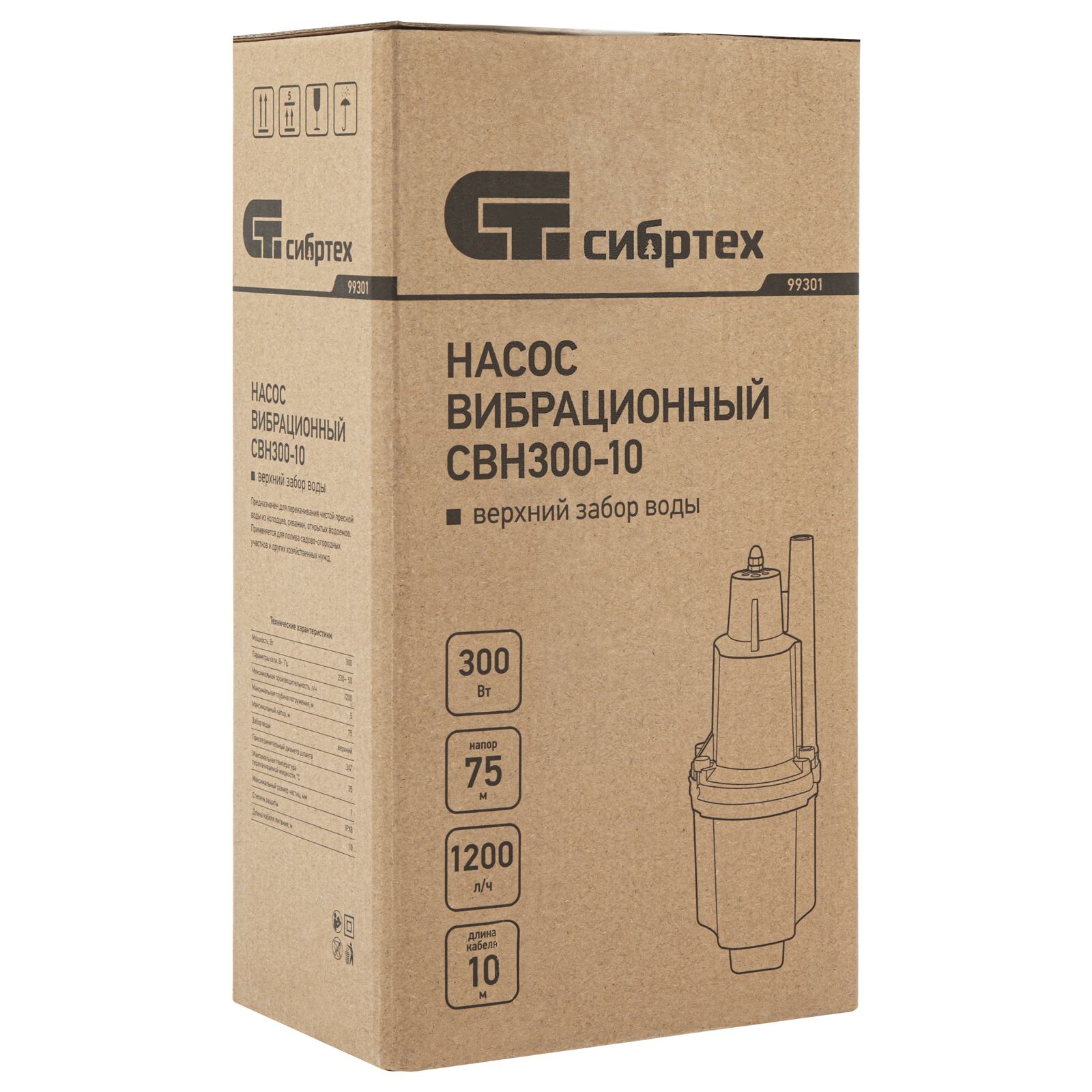 Вибрационный насос СВН300-10, верхний забор, 300 Вт, напор 75 м, 1200 л/ч, кабель 10 м Сибртех, 1200 л/ч в Краснодаре