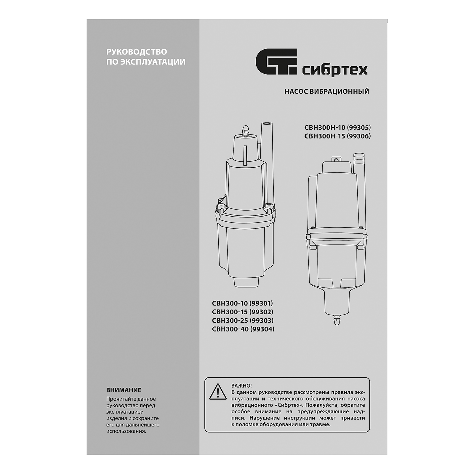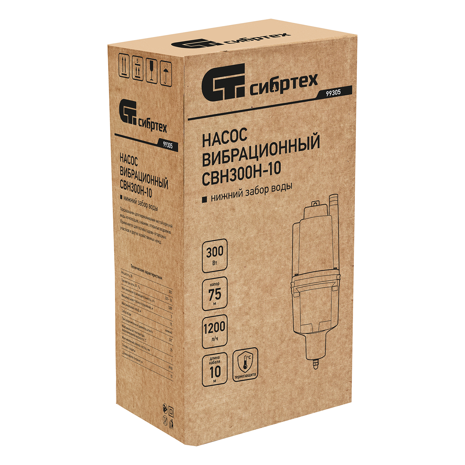 Вибрационный насос СВН300Н-10, нижний забор, 300 Вт, напор 75 м, 1200 л/ч, кабель 10 м Сибртех в Краснодаре