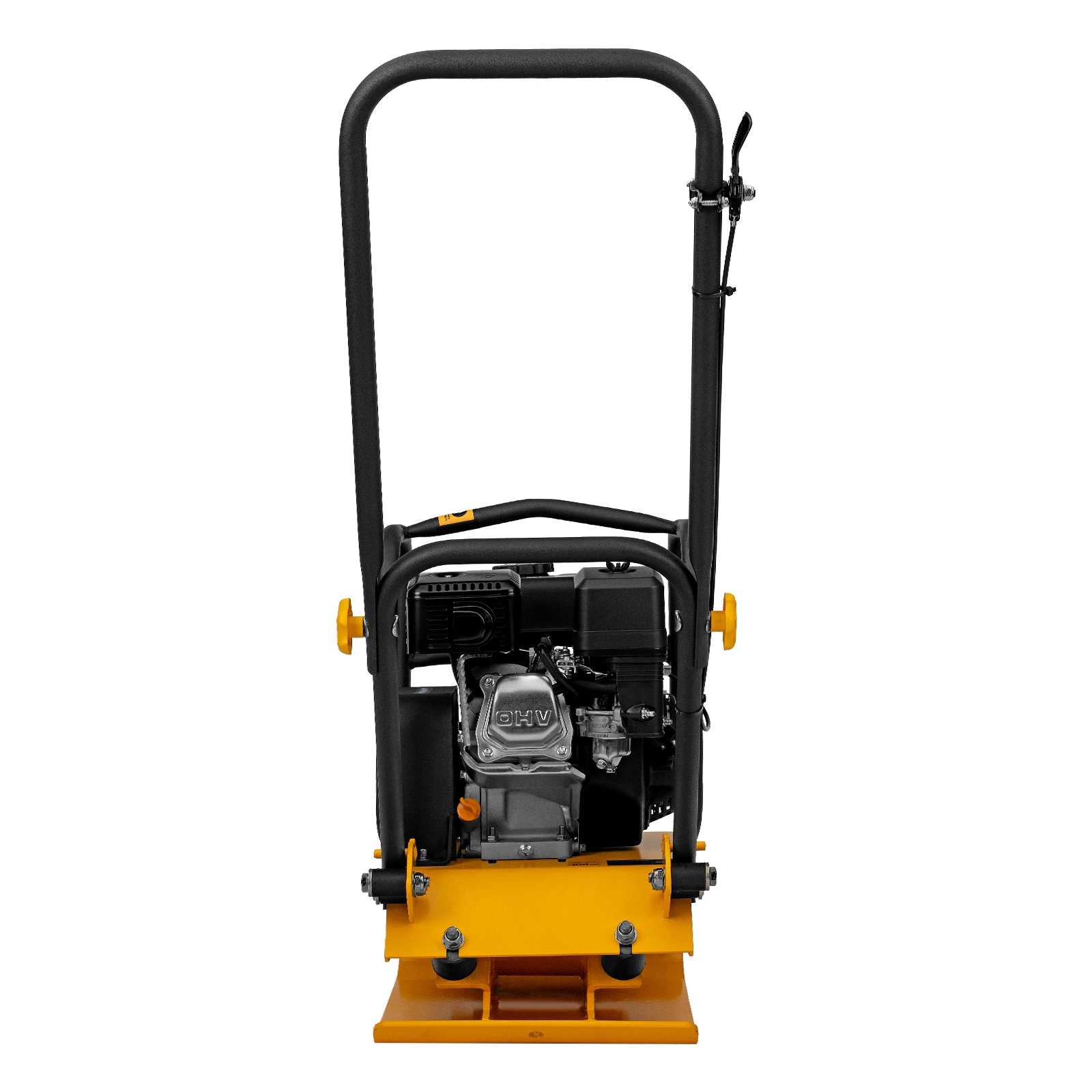 - Удобное хранение — благодаря складной рукоятке виброплита не занимает много места.