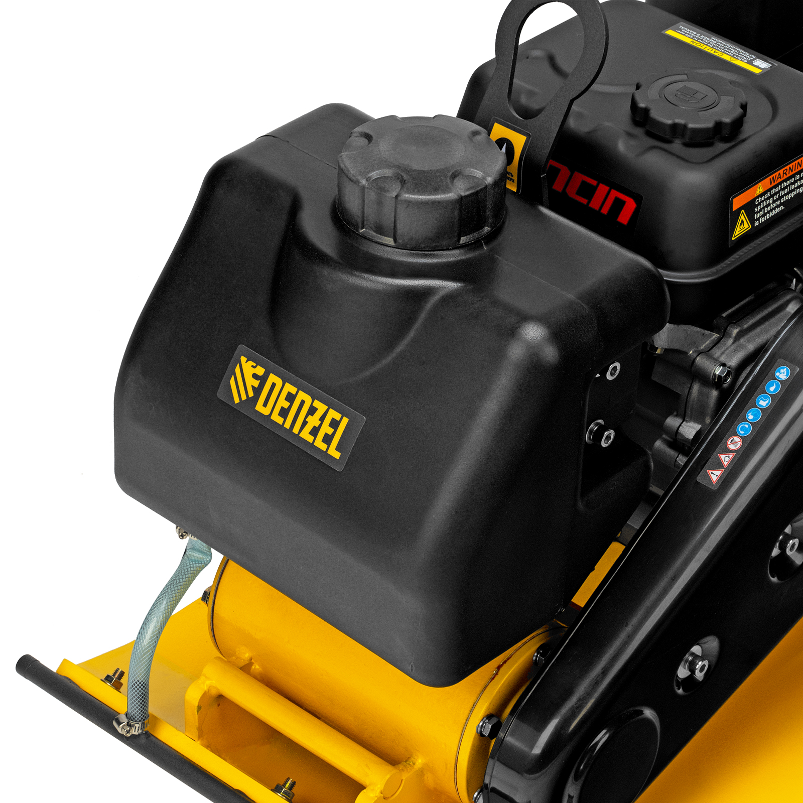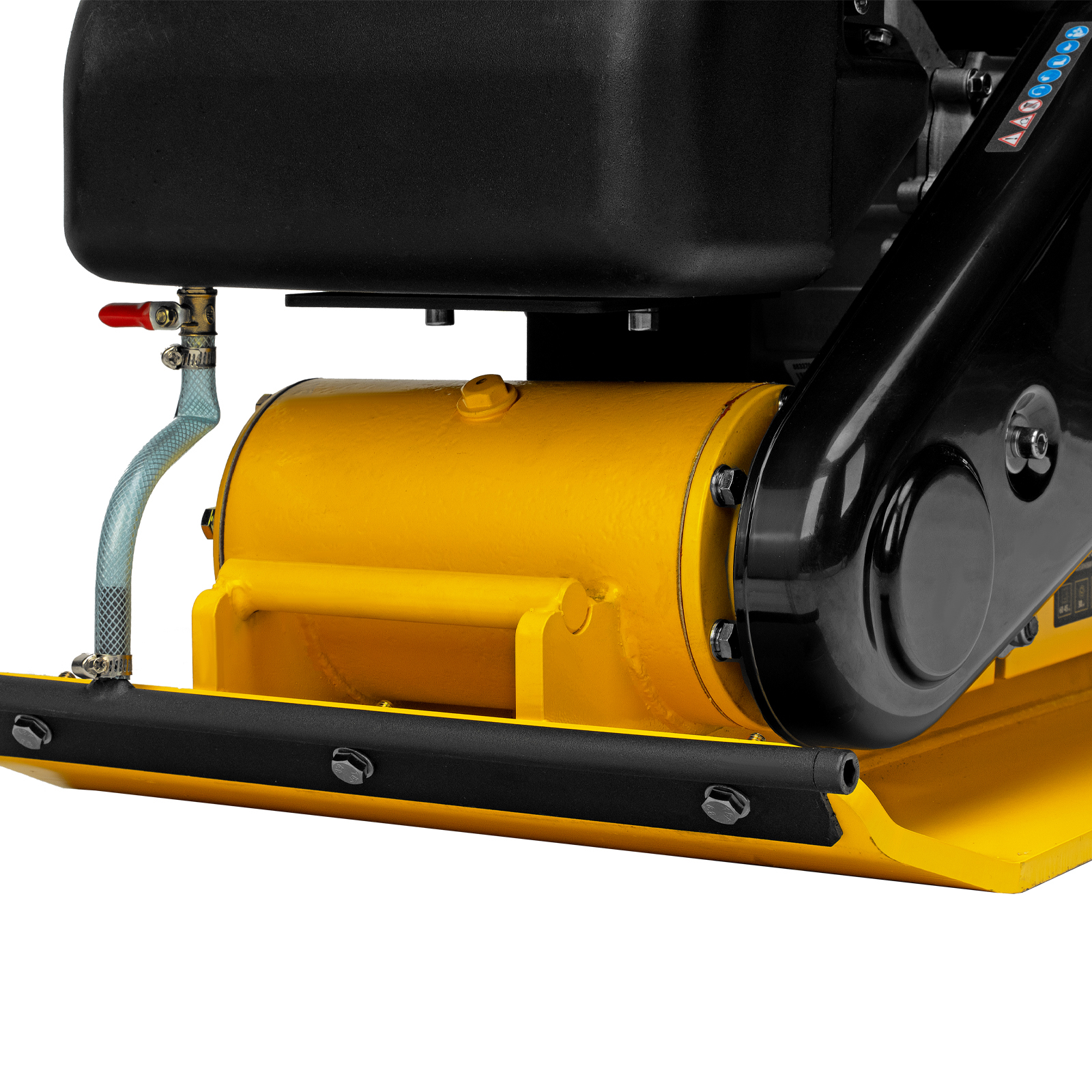 - Удобная работа с горячим асфальтом и липкими смесями — на виброплите установлен бак для воды, орошение уплотняемого покрытия предотвращает его налипание на основание плиты.
