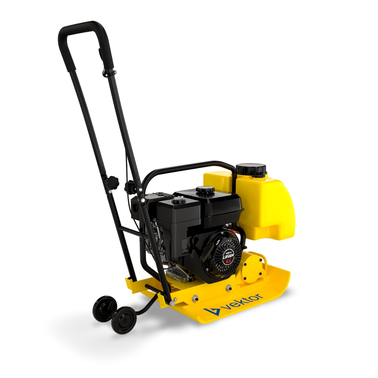 Виброплита работает на бензиновом двигателе Lifan, что делает её автономной. Мощность двигателя 4,8 кВт/6 л.с.