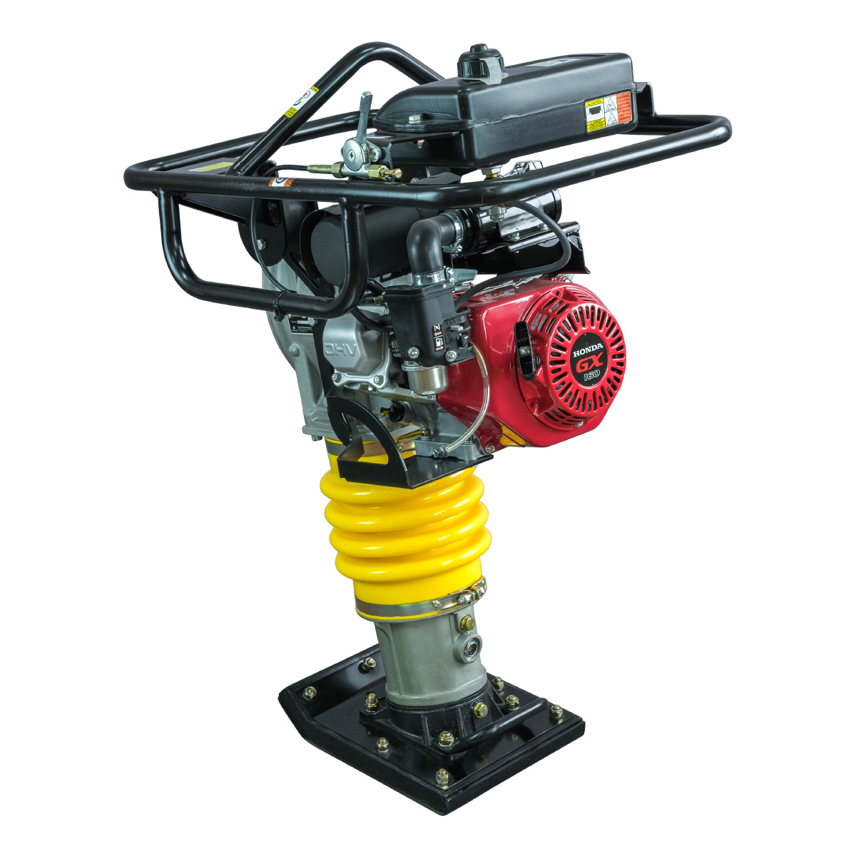 Преимущества Двигатель Honda GX160 мощностью 5,5 л.с. разработан для вибрационного оборудования. Регулировка оборотов осуществляется плавно благодаря наличию специального рычага управления дросселем. Эффективный глушитель и воздушный фильтр обеспечивают высокую производительность. Компактная конструкция упрощает эксплуатацию и ремонт. Специальная система креплений уменьшает вибрации, передаваемые оператору. Топливный бак из устойчивого к коррозии пластика продлевает срок службы. Стальной трамбовочный башмак и защитный каркас повышают надежность. Оптимальное уплотнение и низкий уровень шума делают работу комфортной. |