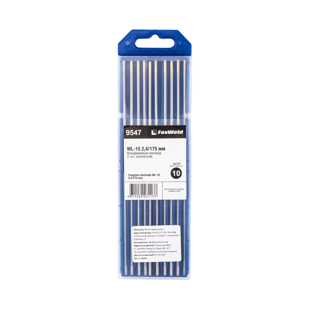 Вольфрамовый электрод WL-15 2,4мм / 175мм (1шт. золотистый) FoxWeld