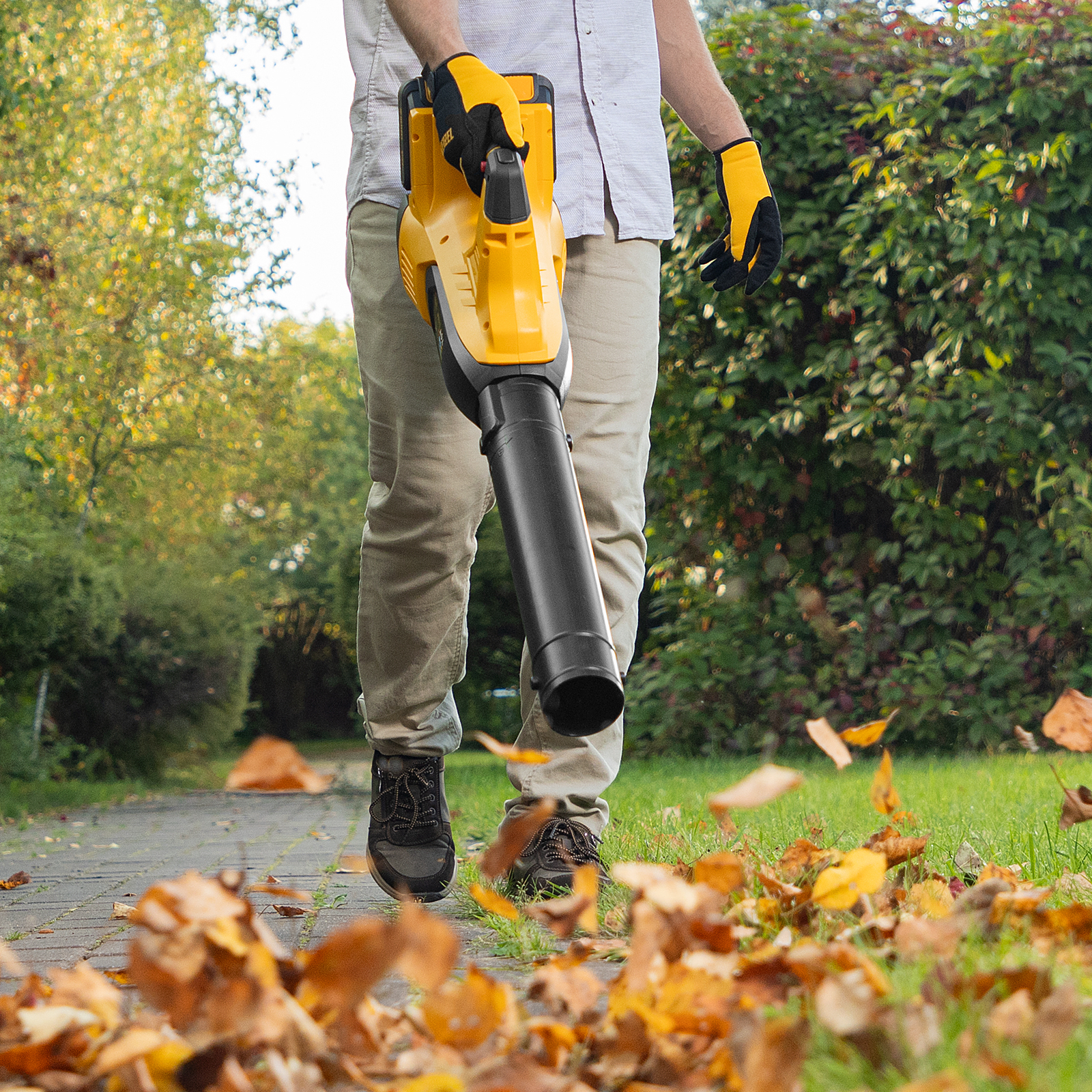 Аккумуляторная воздуходувка Denzel RB180-36 59610 производительностью 820 куб. м/ч предназначена для очистки придомовых территорий от опавшей листвы, скошенной травы и опилок. Высокая скорость воздушного потока 180 км/ч обеспечивает эффективную работу и позволяет убирать также мелкий строительный мусор и небольшие ветки.,Благодаря аккумуляторам Li-ion общим напряжением 36 В и емкостью 4 Ач можно работать в любом месте вне зависимости от наличия электросети. Воздуходувка не выделяет вредных выхлопов и не требует сложного технического обслуживания, что делает ее использование максимально удобным и безопасным.