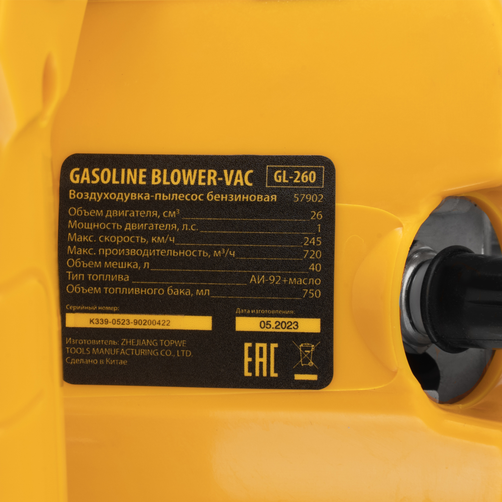 Воздуходувка-пылесос бензиновая GL-260, 26 см3, 1 л.с. Denzel в Краснодаре