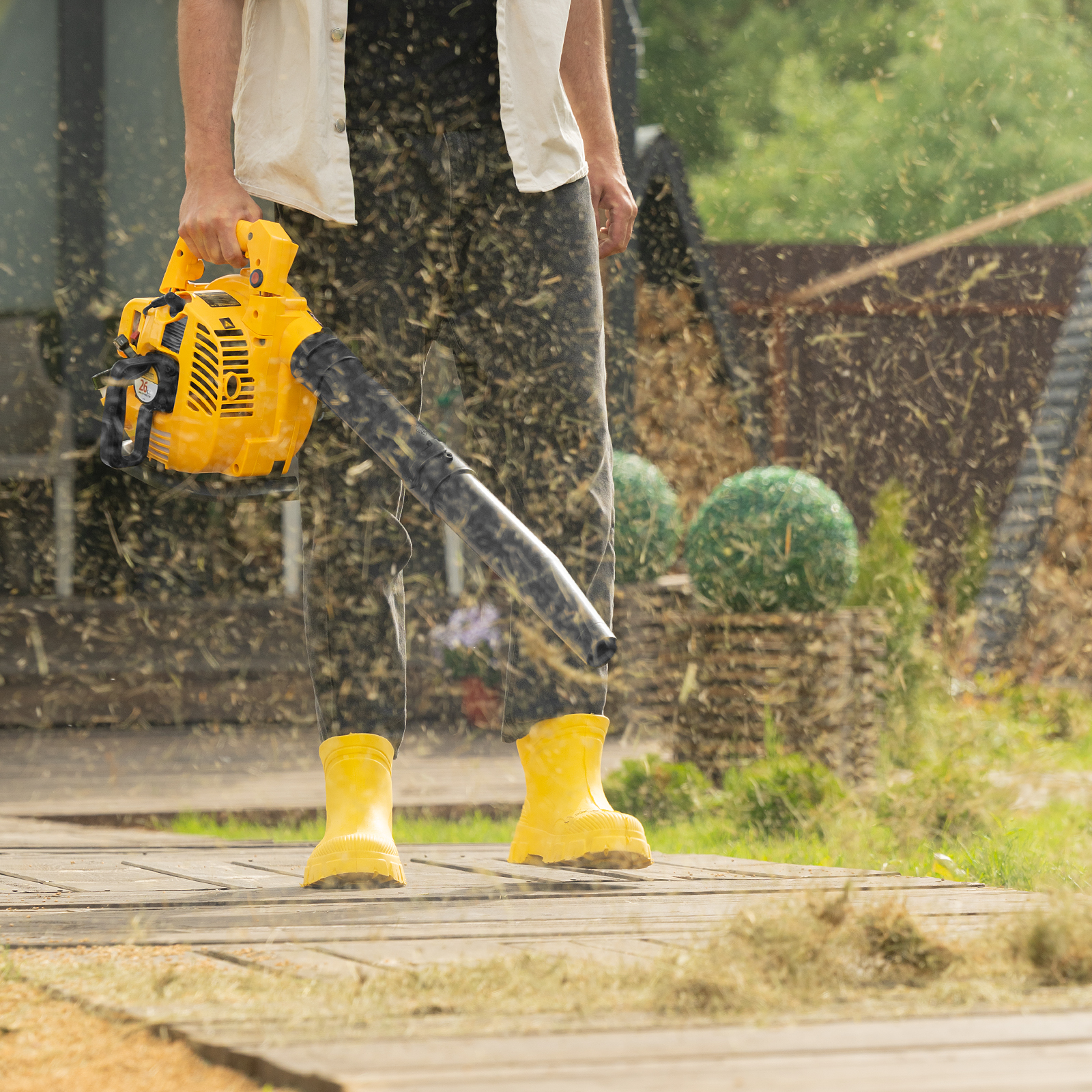 Бензиновая воздуходувка-пылесос Denzel GL-260 57902 с двухтактным двигателем объемом 26 см³ и мощностью 1 л.с. предназначена для очищения территории от листьев и скошенной травы. Скорость потока воздуха 245 км/ч обеспечивает высокую эффективность работы. Техника работает как в режиме обдува, так и всасывания: при этом мусор измельчается в мешок объемом 40 л, входящий в комплект поставки. Такое решение избавляет от необходимости вручную собирать листву и траву после уборки.
