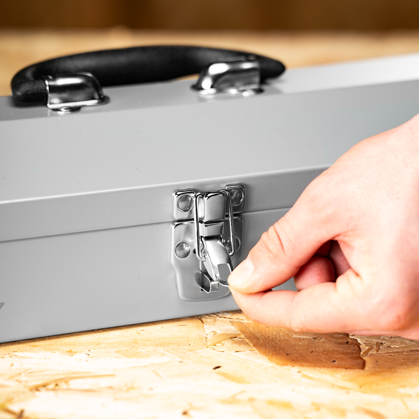 - Крепкий замок — находящиеся в ящике предметы не рассыпятся во время хранения или транспортировки.